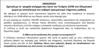 Συγκέντρωση ΣΗΜΕΡΑ 19/6 των συμμαθητών του 13χρονού μαθητή που τραυματίστηκε στο...